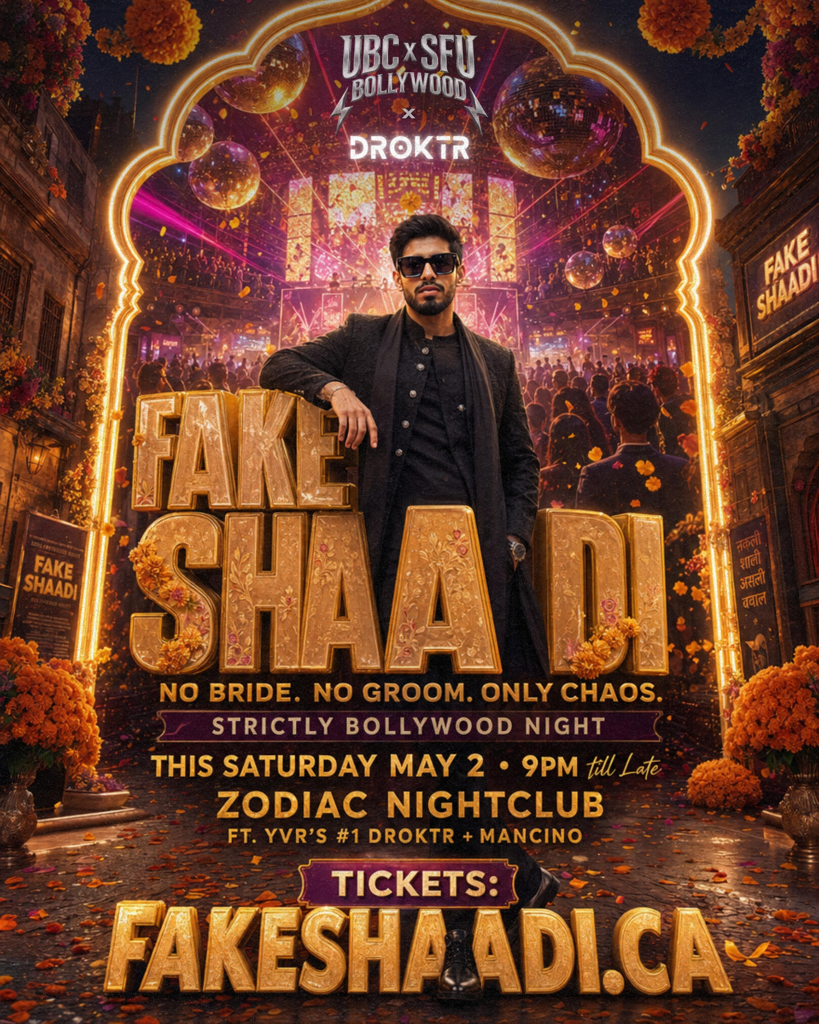 FAKE SHAADI: Strictly Bollywood Night ft. YVR's #1 DROKTRVancouver, get ready — After hosting Canada's Biggest Fake Shaadi last year, we're back for a Fake Shaadi Pop up - we’re turning Zodiac Nightclub into a full Fake Shaadi experience for one massive Bollywood takeover.This Saturday, May 2 at 9PM onwards, expect nonstop Bollywood anthems, wedding-season energy, packed dancefloor moments, and full filmy vibes from start to finish.Featuring YVR’s #1 DROKTR alongside MANCINO, this is strictly Bollywood all event — the songs you know, the crowd you want, and the shaadi-style madness without the actual marriage.Come dressed to impress, bring your crew, and get ready for one of the most unique Bollywood parties in the city.Fake Shaadi - Strictly Bollywood Night